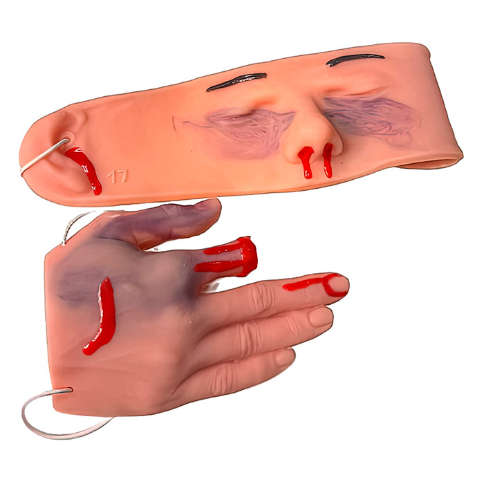 Набор ранений выполнен из специального силикона, имитирующего кожу человека. Материал нетоксичен, не вызывает аллергических реакций.