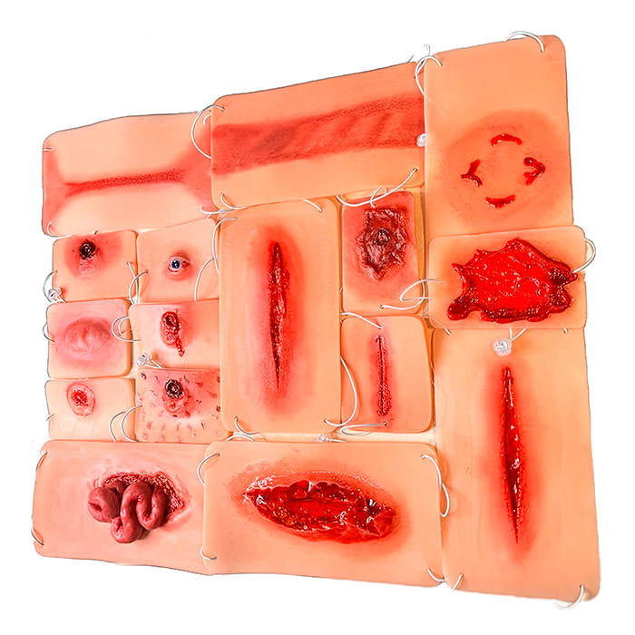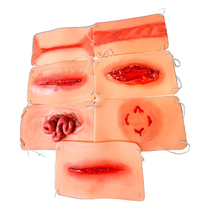 Наборы муляжей позволяют наглядно демонстрировать обучающимся насильственные виды ран и поражений, для более детального изучения.