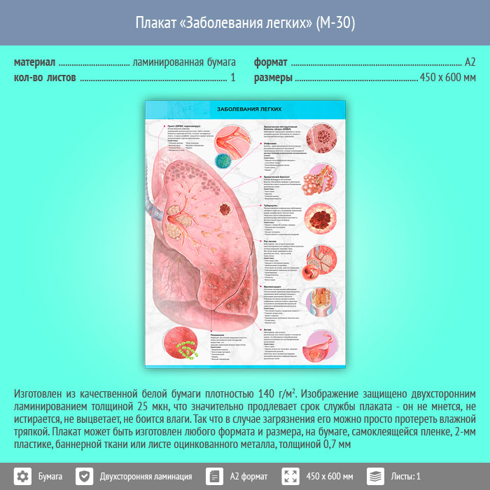 Плакат «Заболевания легких» (М-30, ламинированная бумага, А2, 1 лист)