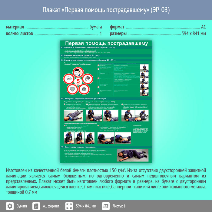 Плакат «Первая помощь пострадавшему» (ЭР-03, бумага, А1, 1 лист)