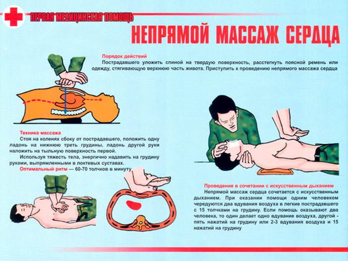 - Плакат «Непрямой массаж сердца» – порядок действия, техника и проведение