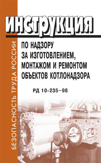 Название документа: «Инструкция по надзору за изготовлением, монтажом и ремонтом объектов котлонадзора. РД 10-235-98» (утв. Постановлением Госгортехнадзора РФ от 03.09.1998 № 56)
