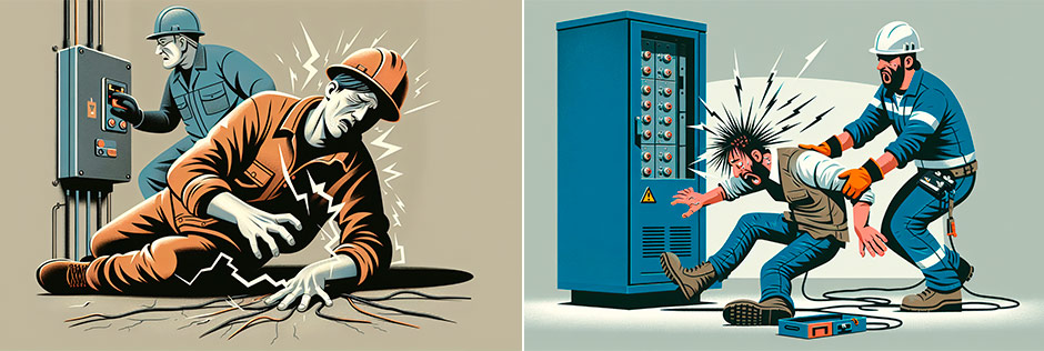Новый плакат «Первая помощь при поражении электрическим током» с качественными иллюстрациями наглядно показывает и описывает порядок оказания первой доврачебной помощи при поражении электрическим током.