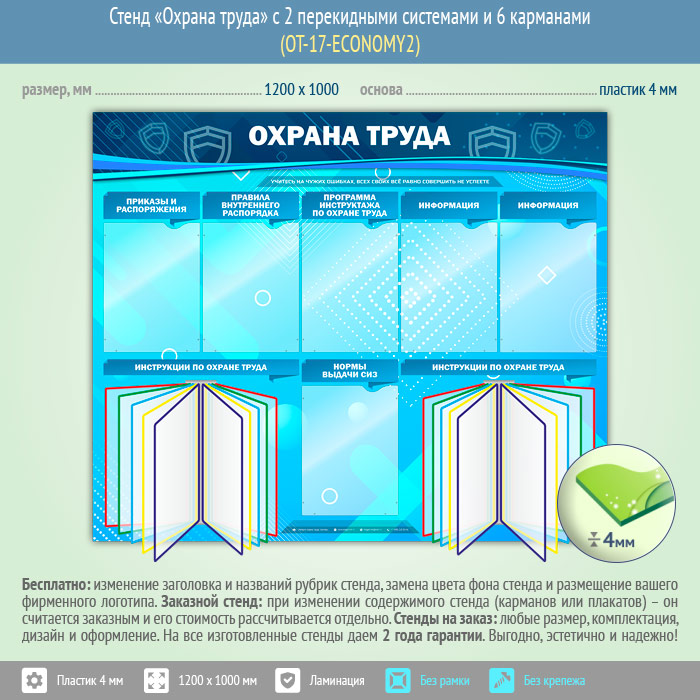 Стенд «Охрана труда» с 2 перекидными системами и 6 карманами (OT-17-ECONOMY2)