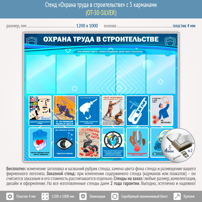Стенд «Охрана труда в строительстве» с 5 карманами (OT-30-SILVER)