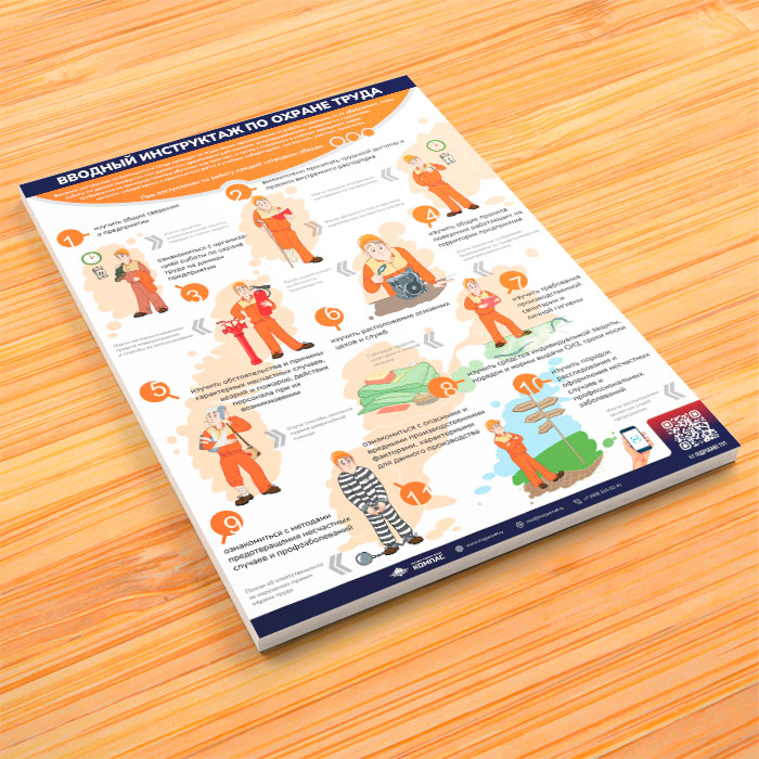 Плакат «Вводный инструктаж по охране труда» может быть изготовлен любого формата и размера, на бумаге, самоклеящейся пленке, пластике, баннерной ткани и металле. Разрабатываем, рисуем и изготавливаем плакаты на любую интересующую Вас тематику