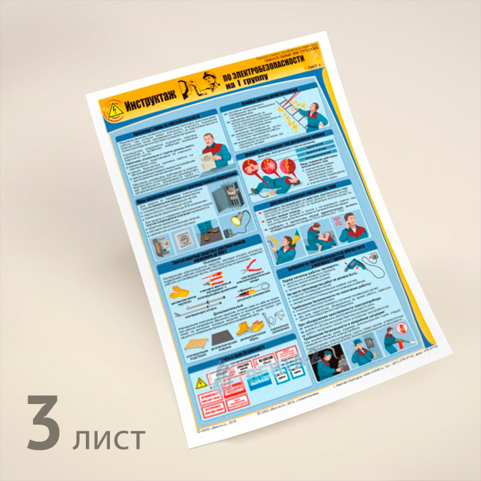 Комплект плакатов из 3 листов «Обязательные инструктажи» состоит из инструктажей, необходимых для изучения при приеме на работу, а именно вводного инструктажа по охране туда, инструктажа на 1 группу по электробезопасности и вводного инструктажа по пожарной безопасности