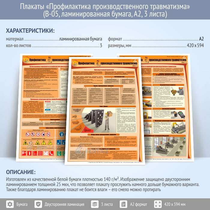 Плакаты «Профилактика производственного травматизма» (В-05, ламинированная бумага, А2, 3 листа)
