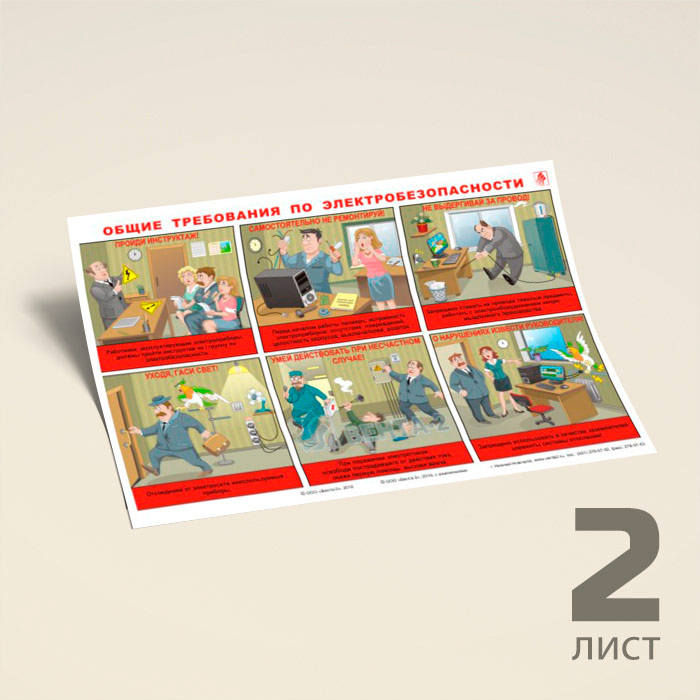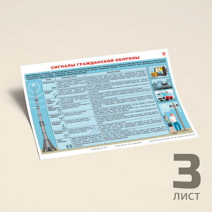 Комплект плакатов из 3 листов «Комплект для офиса: пожарная безопасность, электробезопасность, гражданская оборона» описывает общие требования электро- и пожаробезопасности в офисе, разъясняет значение сигналов гражданской обороны и действия населения при их звучании