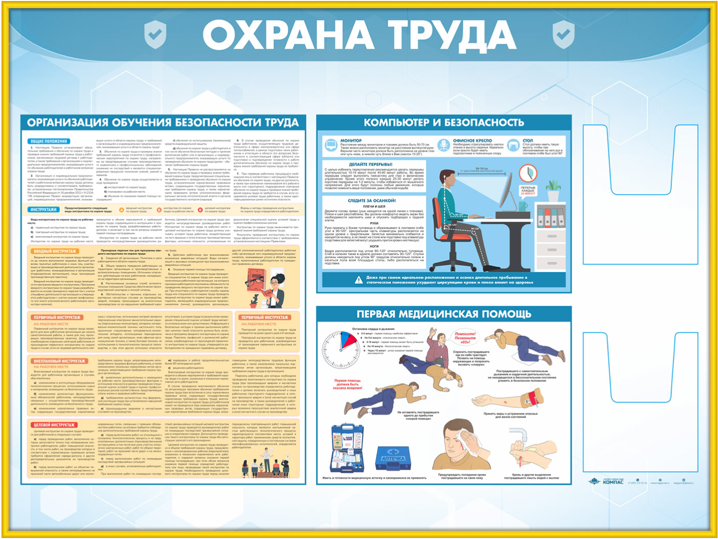 Стенд «Охрана труда» с 2-мя глубокими А5 карманами содержит общую информацию об охране труда