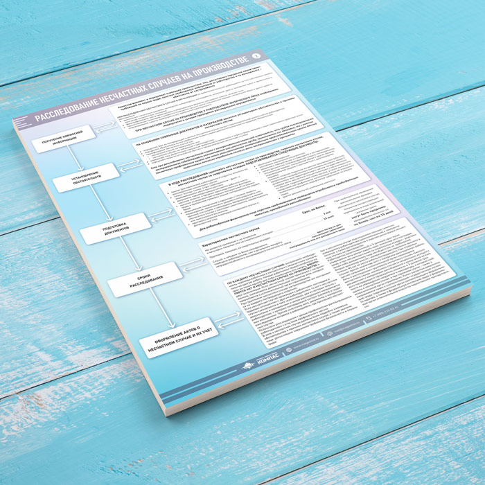 Комплект плакатов «Расследование несчастных случаев на производстве» изготавливается в А2 формате (точный размер – 450х600 мм)