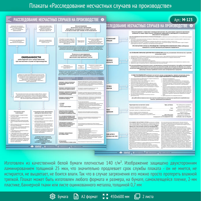 Плакаты «Расследование несчастных случаев на производстве» (М-123, ламинированная бумага, А2, 2 листа)