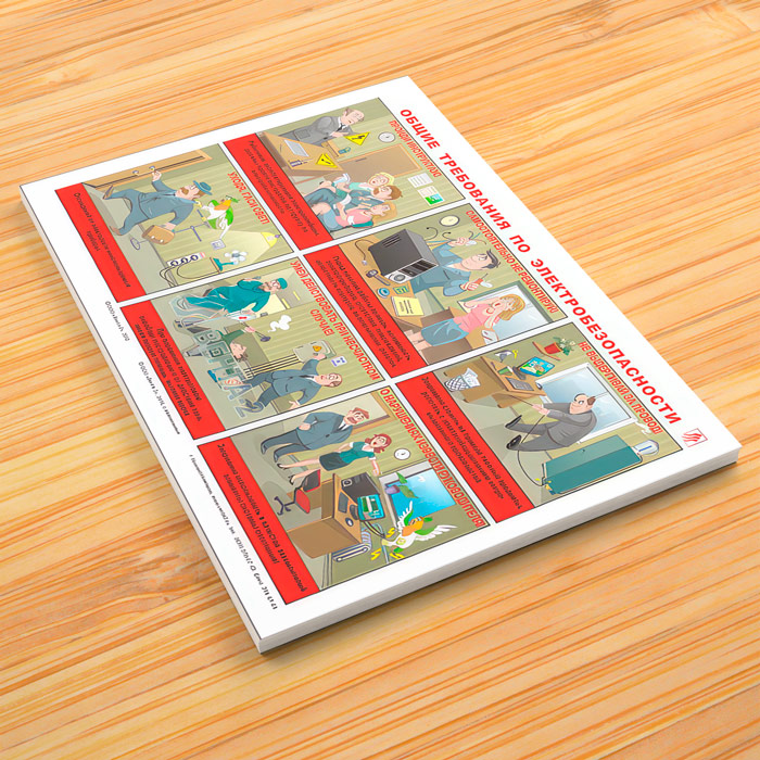 Комплект плакатов из 3 листов «Комплект для офиса: пожарная безопасность, электробезопасность, гражданская оборона» описывает общие требования электро- и пожаробезопасности в офисе, разъясняет значение сигналов гражданской обороны и действия населения при их звучании