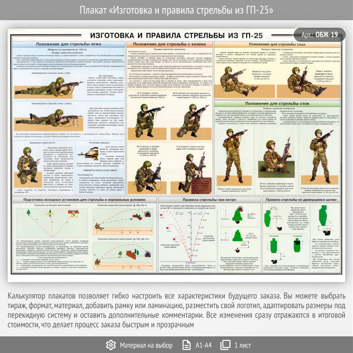 Плакат «Изготовка и правила стрельбы из ГП-25» (ОБЖ-19, 1 лист)