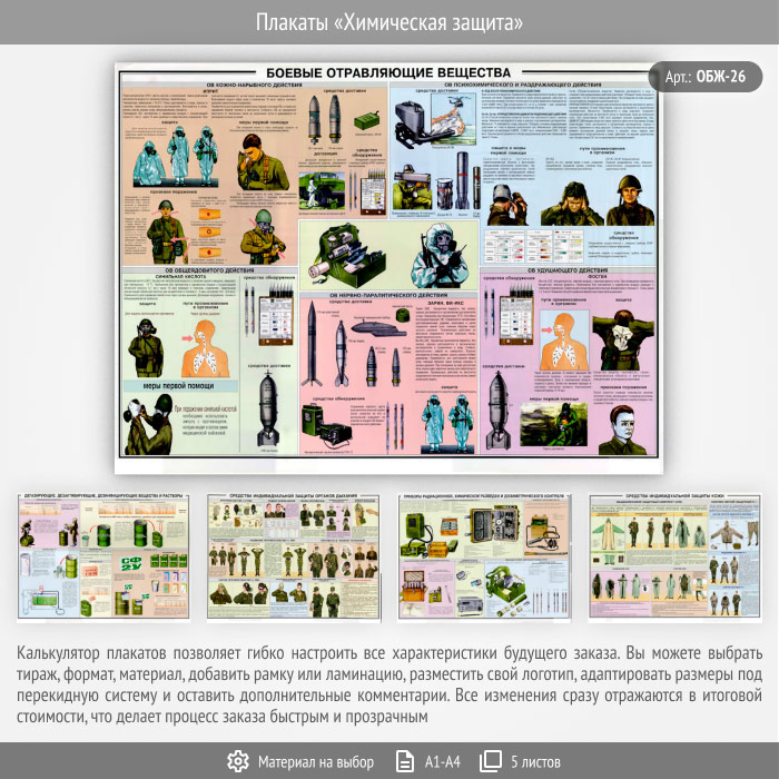 Плакаты «Химическая защита» (ОБЖ-26, 5 листа)