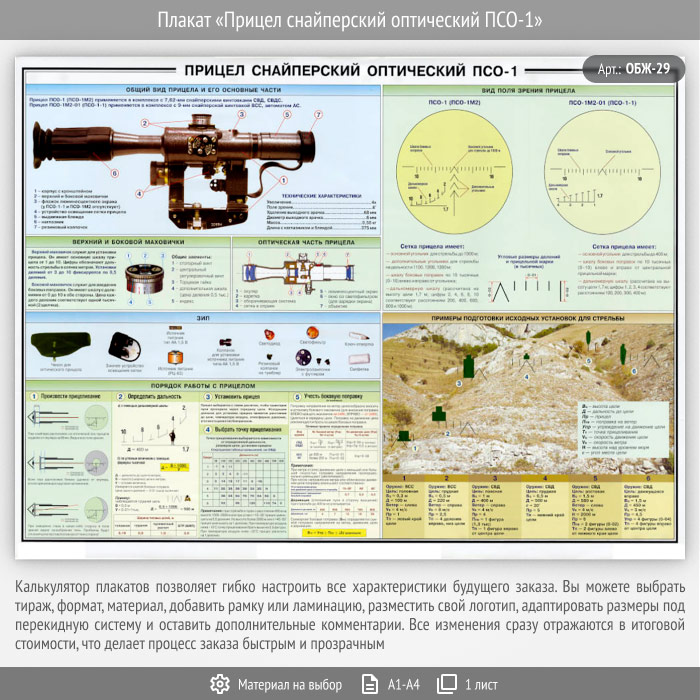 Плакат «Прицел снайперский оптический ПСО-1» (ОБЖ-29, 1 лист)