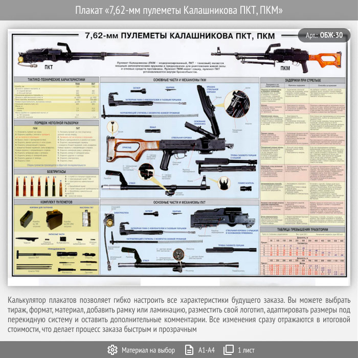 Плакат «7,62-мм пулеметы Калашникова ПКТ, ПКМ» (ОБЖ-30, 1 лист)