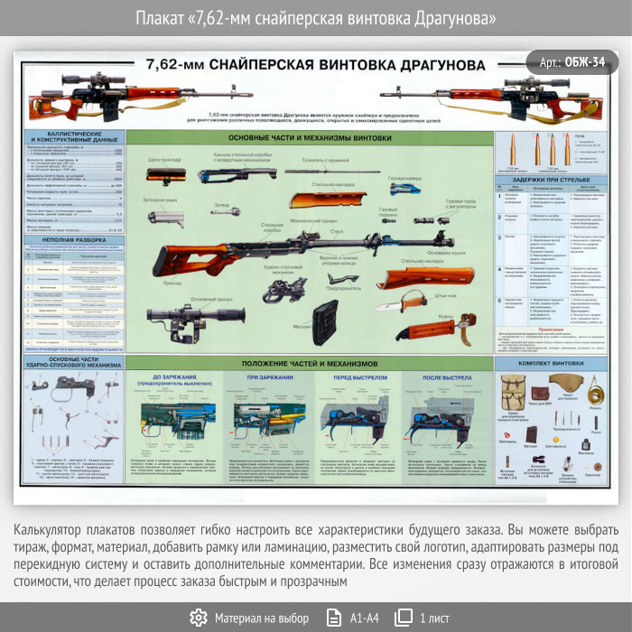 Плакат «7,62-мм снайперская винтовка Драгунова» (ОБЖ-34, 1 лист)