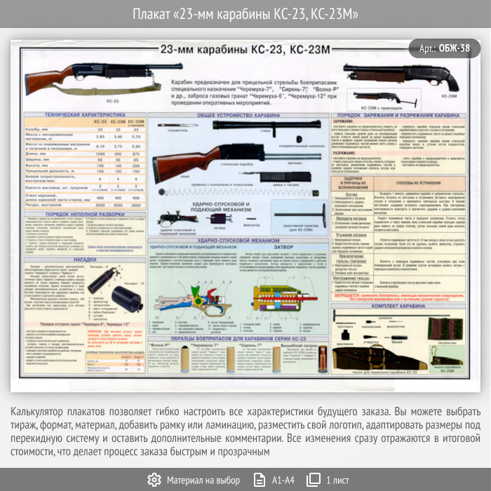 Плакат «23-мм карабины КС-23, КС-23М» (ОБЖ-38, 1 лист)
