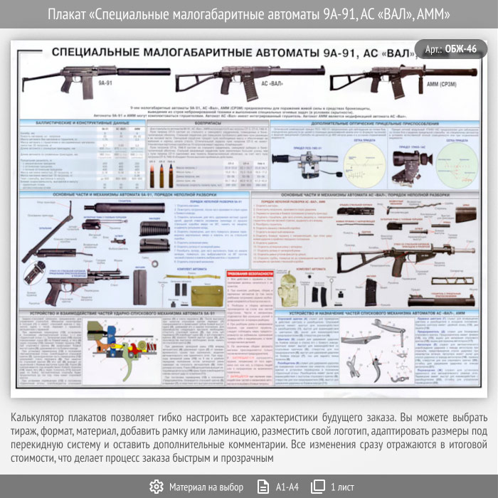 Плакат «Специальные малогабаритные автоматы 9А-91, АС «ВАЛ», АММ» (ОБЖ-46, 1 лист)