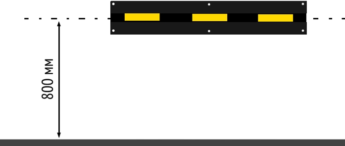 До начала установки демпфера необходимо определить уровень, на котором будет располагаться изделие. Высота крепления настенного демпфера зависит от его назначения. Для защиты от наезда бампером рекомендуется крепить настенный отбойник на высоте 45 см от пола до середины демпфера. Для защиты дверей автомобилей демпфер может крепиться на высоте 80 см от пола до середины демпфера. При использовании в складских, производственных помещениях и местах разгрузки – высота крепления определяется в каждом случае индивидуально. Демпфер стеновой монтируется на поверхность стены с помощью саморезов с п/э дюбелем. Количество креплений – 6 шт./пог. м.