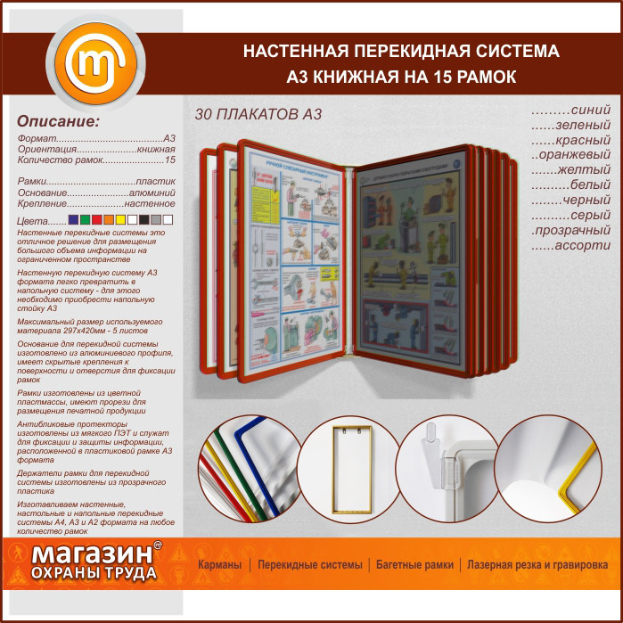 Настенная перекидная система А3 на 15 рамок книжная