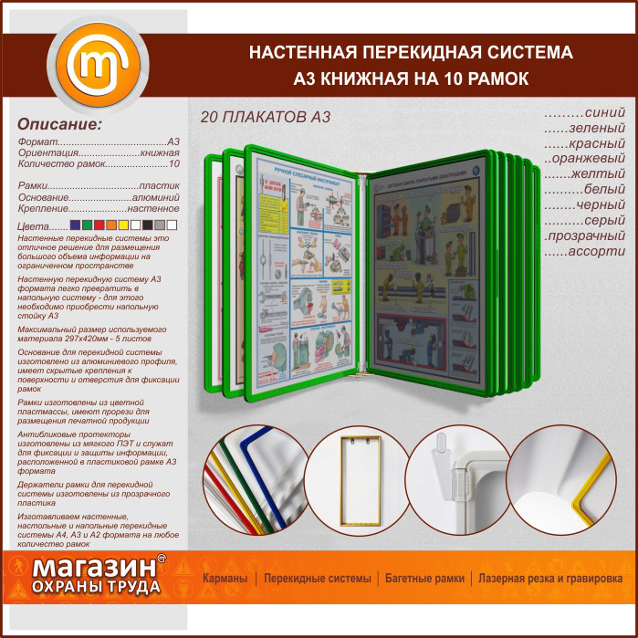 Настенная перекидная система А3 на 10 рамок книжная