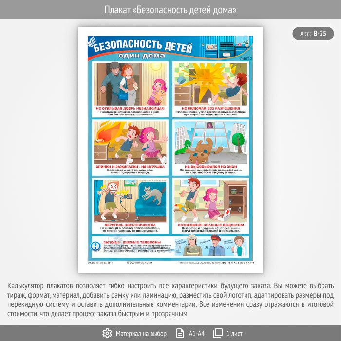 Плакат «Безопасность детей дома» (В-25, 1 лист)