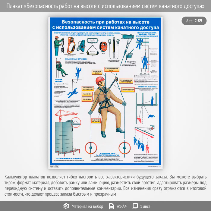 Плакат «Безопасность работ на высоте с использованием систем канатного доступа» (С-89, 1 лист)