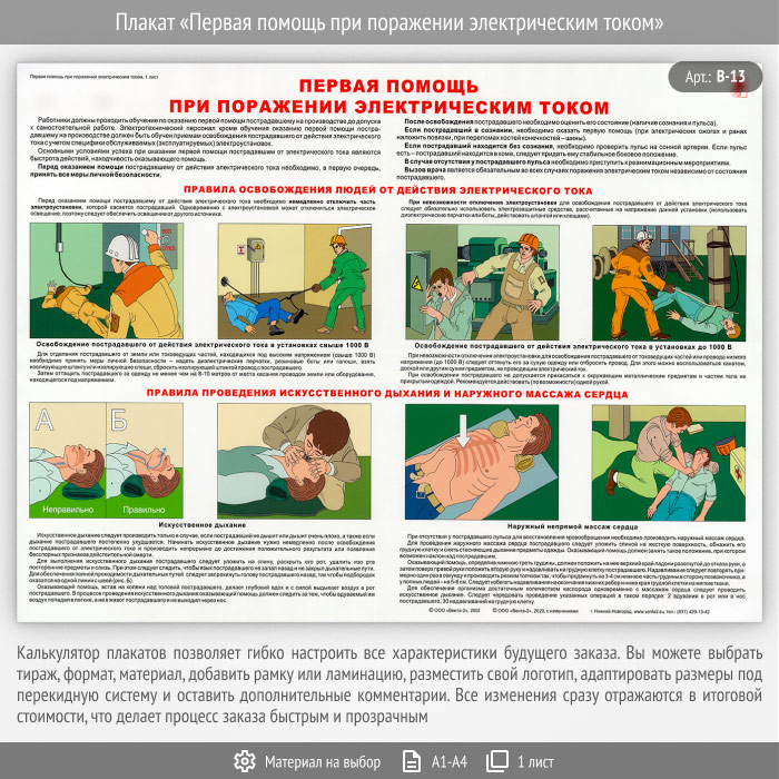 Плакат «Первая помощь при поражении электрическим током» (В-13, 1 лист)