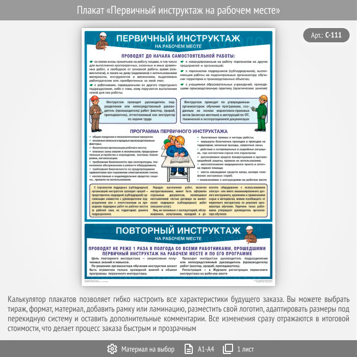 Плакат «Первичный инструктаж на рабочем месте» (С-111, 1 лист)