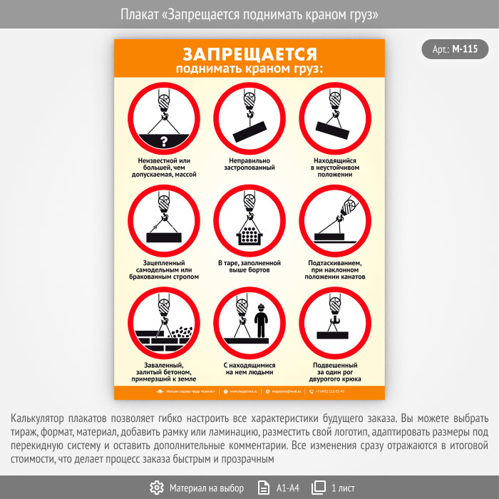 Плакат «Запрещается поднимать краном груз» (М-115, 1 лист)