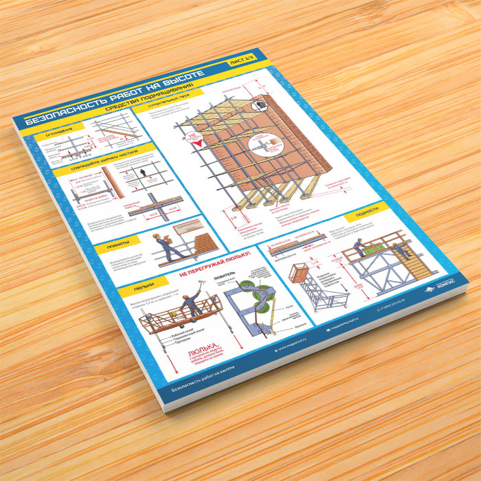 - Плакат «Лестница и отдельные виды работ»: техника безопасности работы на лестнице, а также безопасность при выполнении каменных, огневых, кровельных и электромонтажных работ