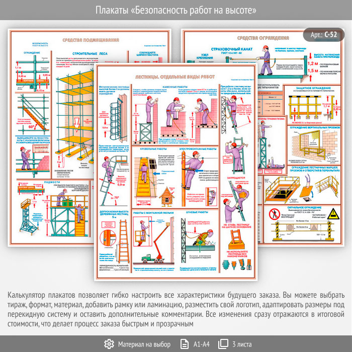 Комплект плакатов «Безопасность работ на высоте» из 3 листов – достойное качество и полезная информация по приемлемой цене