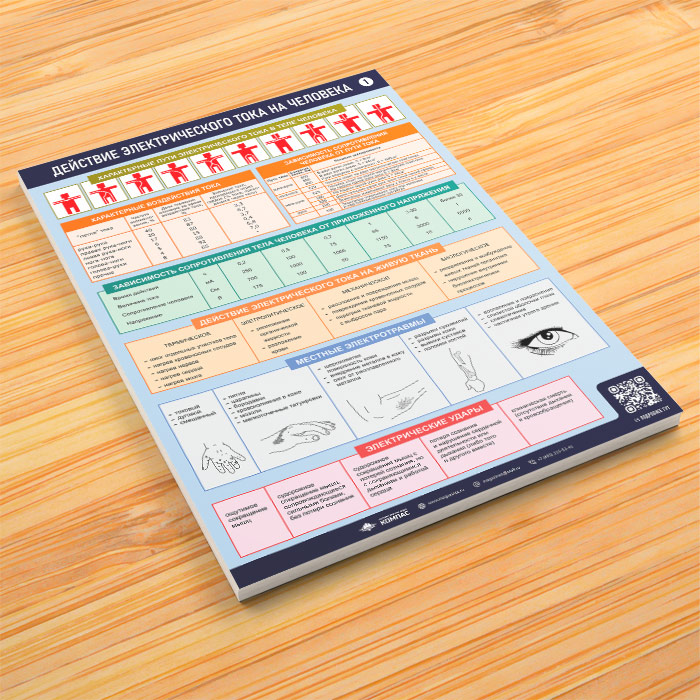Комплект плакатов «Действие электрического тока на человека» из 3 листов может быть изготовлен любого формата и размера, на бумаге, самоклеящейся пленке, пластике, баннерной ткани и металле. Разрабатываем, рисуем и изготавливаем плакаты на любую интересующую Вас тематику