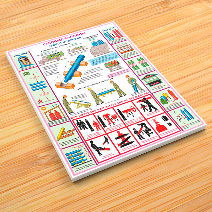 - Плакат «Транспортировка» – безопасность при транспортировке баллонов с газом – хранение, погрузка и выгрузка