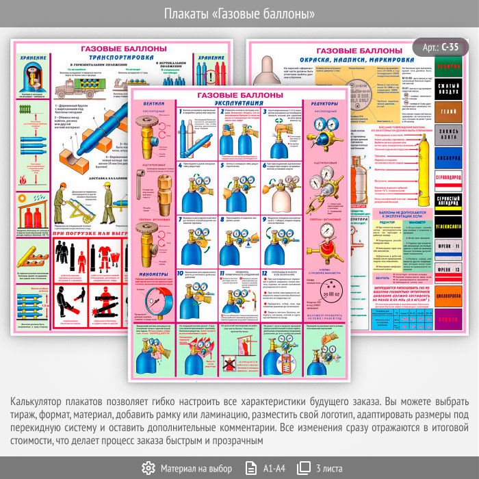 Комплект плакатов «Газовые баллоны» из 3 листов – достойное качество и полезная информация по приемлемой цене