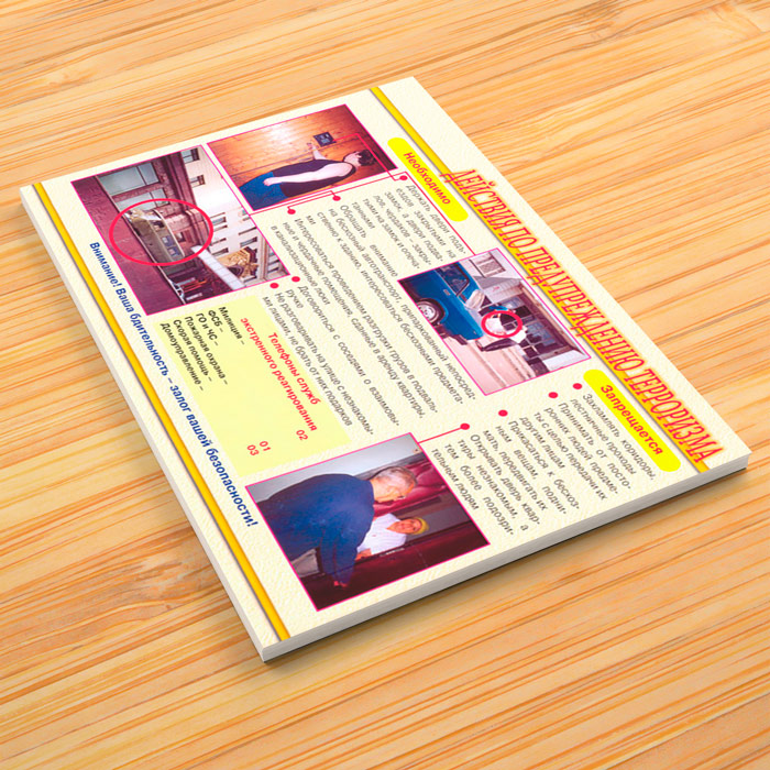 - Плакат «Действия по предупреждению терроризма» – что необходимо и что запрещается делать