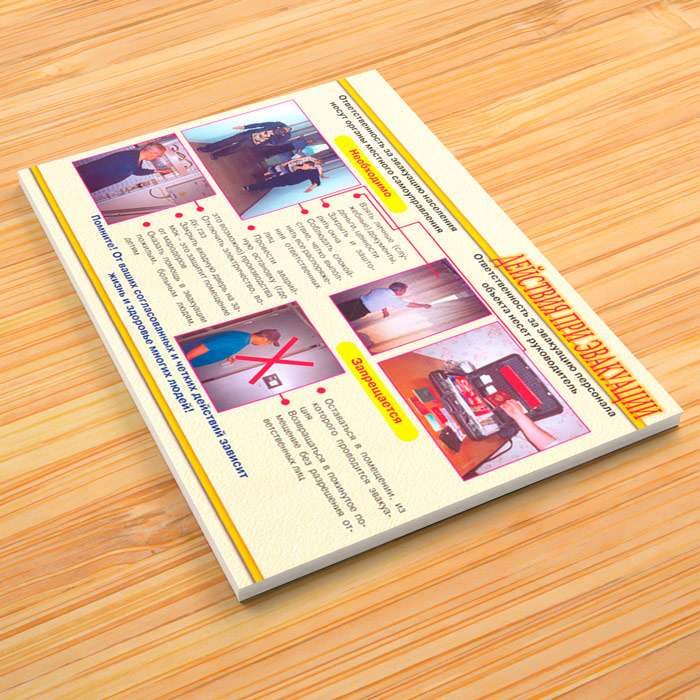 - Плакат «Действия при эвакуации» – что необходимо сделать и чего не следует