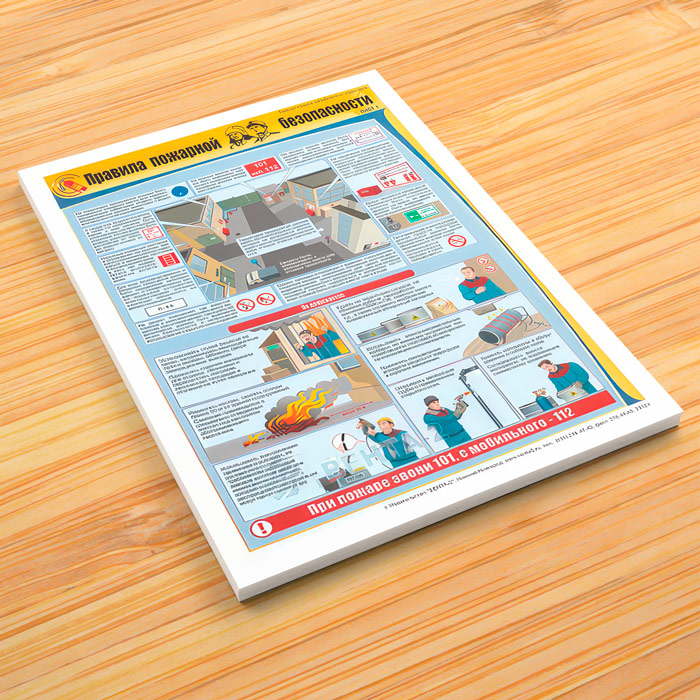 В комплекте плакатов из 3 листов «Правила пожарной безопасности» описываются основные правила пожарной безопасности на предприятии, размещение средств пожаротушения, правила содержания эвакуационных выходов и пожарных проездов, правила проведения пожароопасных работ, условия хранения легкогорючих веществ и баллонов с газом