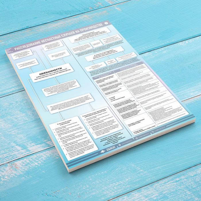 Комплект плакатов «Расследование несчастных случаев на производстве» (М-123) содержит схему расследования несчастных случаев на производстве.