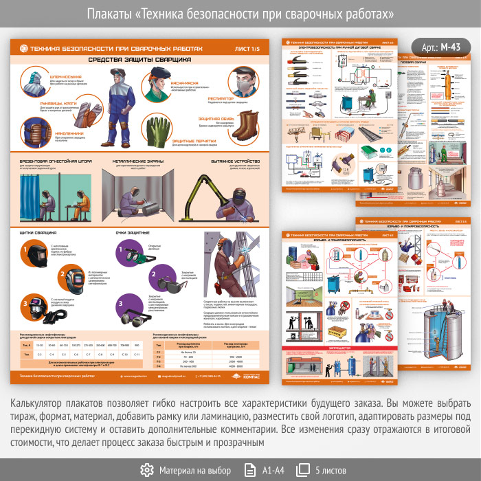 Плакаты «Техника безопасности при сварочных работах» (М-43, 5 листов)