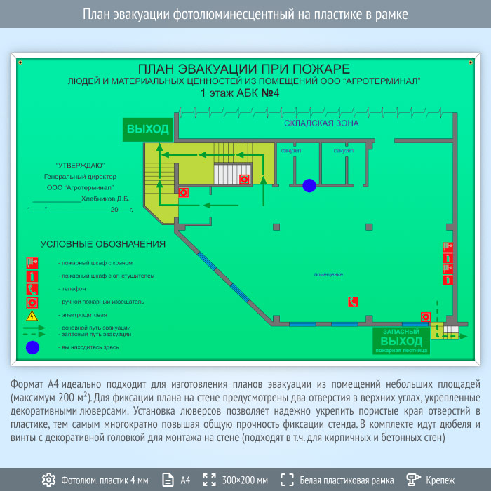 Когда макет план эвакуации согласован с инспектором пожарной безопасности и утвержден руководителем организации, мы приступаем к процессу изготовления
