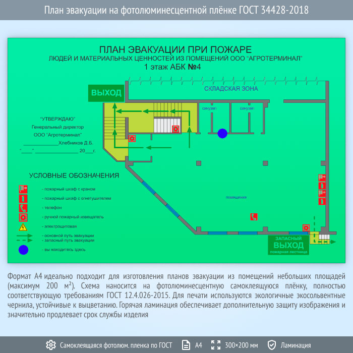 План эвакуации на фотолюминесцентной плёнке ГОСТ 34428-2018