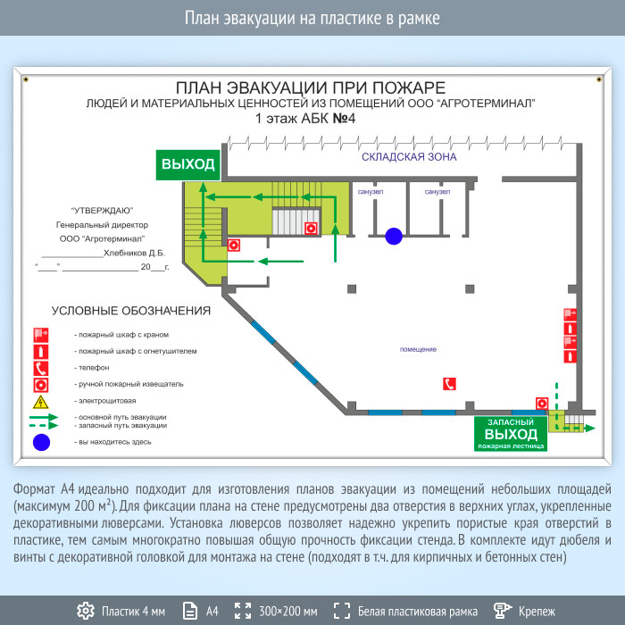 План эвакуации на пластике в рамке