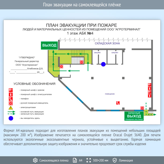 Когда макет план эвакуации согласован с инспектором пожарной безопасности и утвержден руководителем организации, мы приступаем к процессу изготовления
