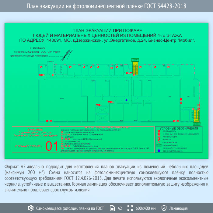 План эвакуации на фотолюминесцентной плёнке ГОСТ 34428-2018 (А2 формат)