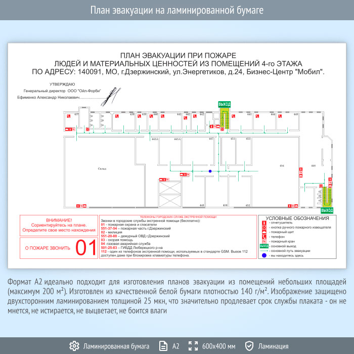 План эвакуации на ламинированной бумаге (А2 формат)