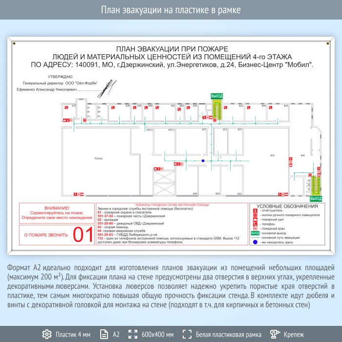План эвакуации на пластике в рамке (А2 формат)