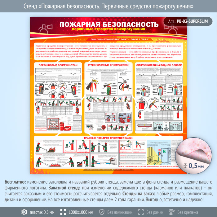Стенд «Пожарная безопасность. Первичные средства пожаротушения» (PB-03-SUPERSLIM)